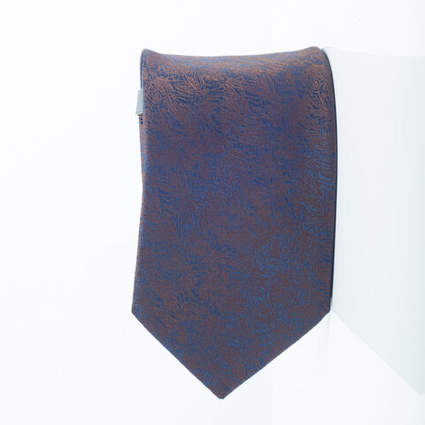 Crafted from premium microfibre, this tie features an intricate botanical-inspired motif in warm hues over a sophisticated blue base. Perfect for a refined and naturally inspired look.