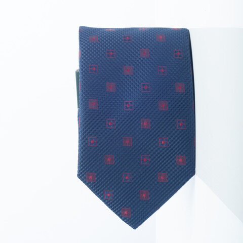 This rich blue microfibre tie is accented with a delicate pattern of repeating square elements in a contrasting hue. A classic and refined choice for a subtle yet distinctive statement.