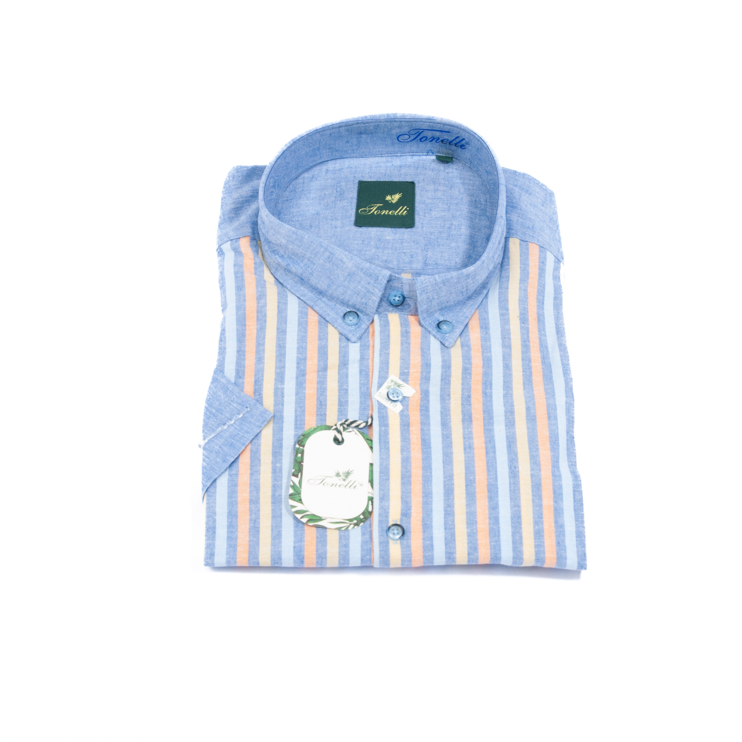 Crafted for comfort and style, this shirt features a dynamic vertical stripe design in harmonious hues. Excellent for smart-casual outings.