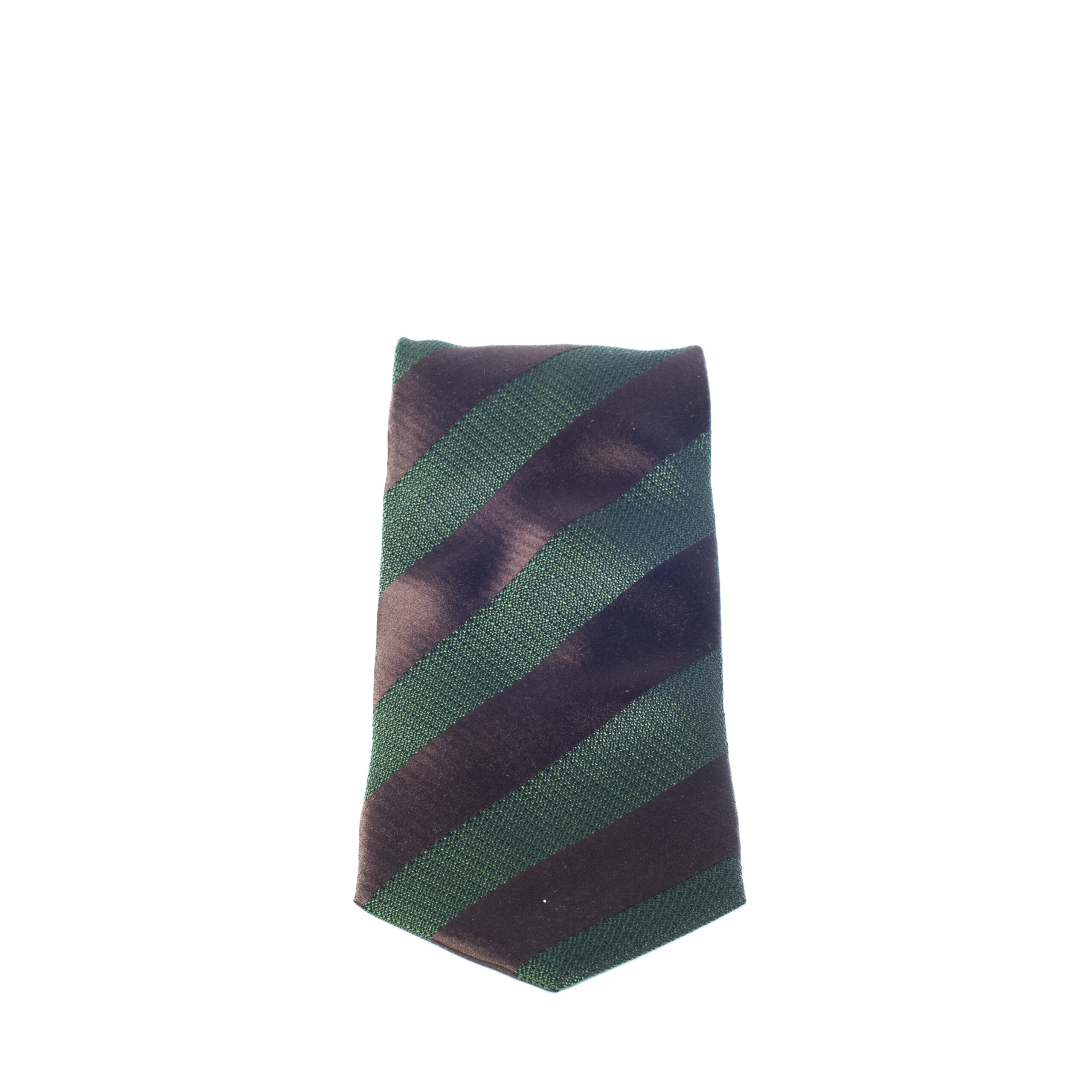 Discover timeless style with The Verdant Grove Silk Tie. This exquisite silk tie showcases bold diagonal stripes in a lush dark green and a deep, complementary brown. The subtle texture on the green stripes adds a sophisticated dimension, making it a versatile and distinguished choice for adding a touch of rustic elegance to your wardrobe.